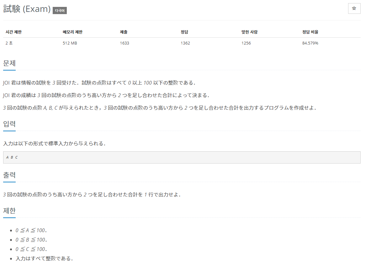 - 입력받은 수 중 높은 2개의 수를 더해 출력하는 문제입니다.