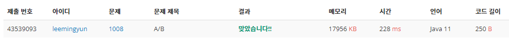 | [백준] 1000번: A+B - JAVA [자바] (0) | 2023.04.17 |