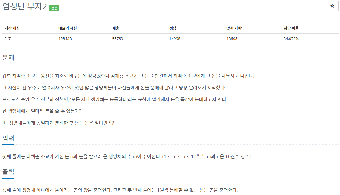 - 입력하는 값이 커 BigInteger 형으로 값을 입력하여야 합니다.