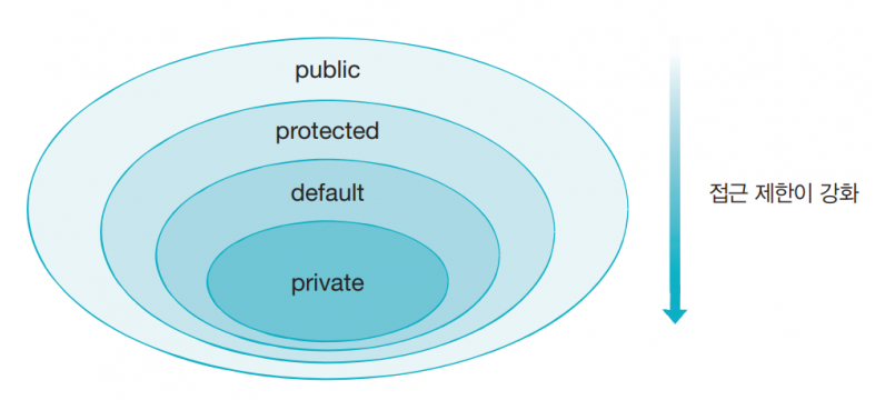 | 접근 제어자 | 클래스 내 | 패키지 내 | 다른 패키지의 하위 클래스 |