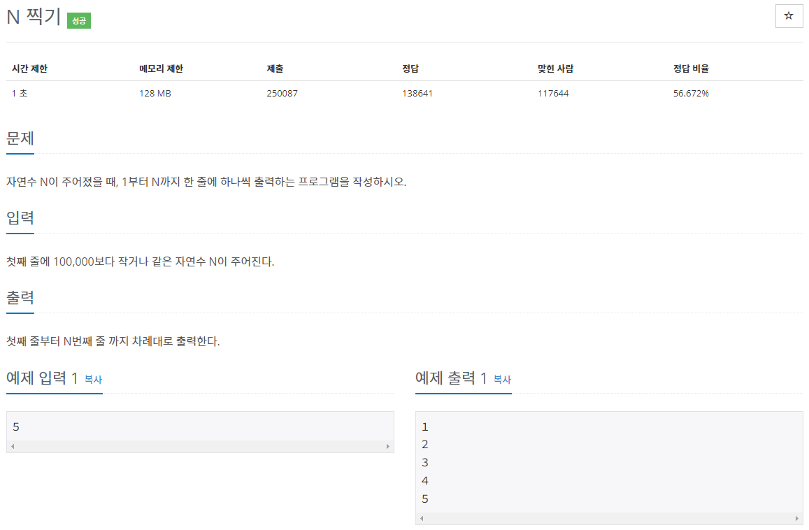 - a를 입력한 뒤 1 부터 a 까지 출력하였습니다.