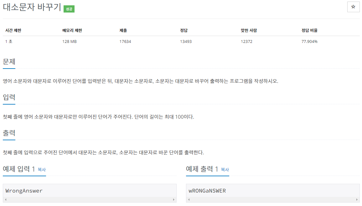 문자열 인덱스의 값이 대문자가 아닐 때 해당 값을 a에 저장해 준 뒤 문자열인 result에 대문자로 변경하여 더해줍니다.
