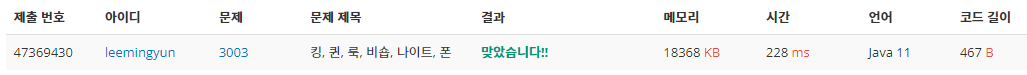 - 킹, 퀸, 룩, 비숍, 나이트, 폰의 개수를 입력합니다.