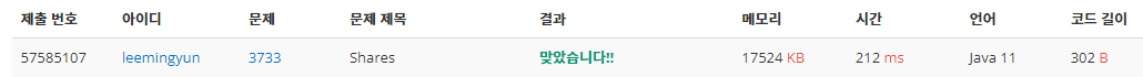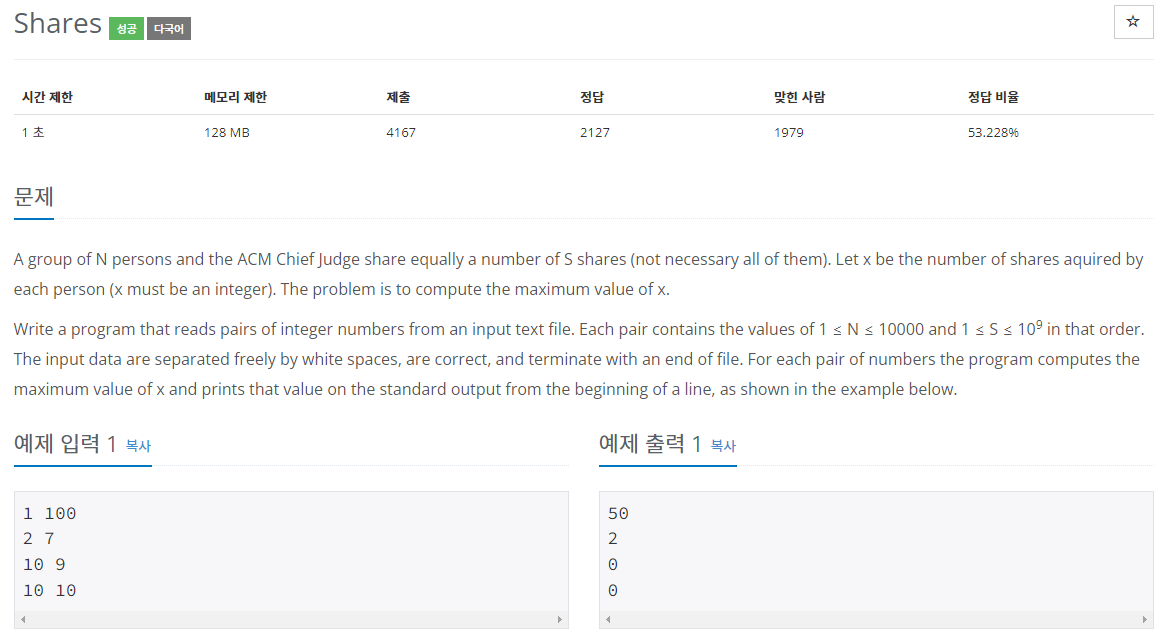 - 나와 입력 받은 수의 사람과 지분을 나누는 문제입니다.