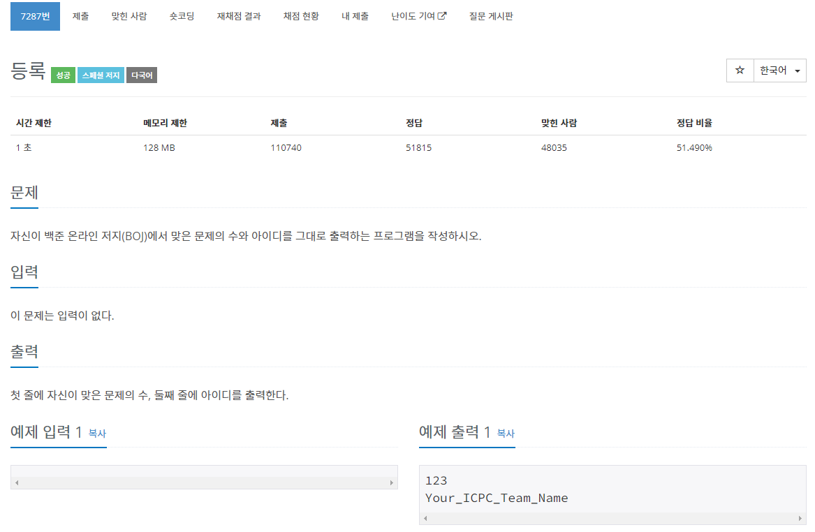 - 맞은 문제의 개수와 아이디를 그대로 출력하였습니다.