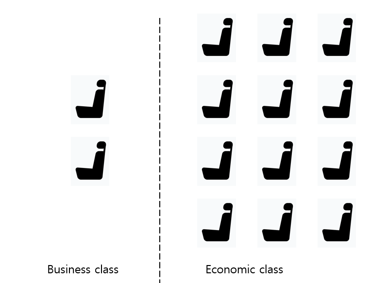 - business class의 좌석의 줄에 좌석 수