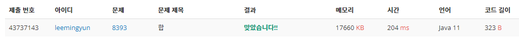 - 수를 입력받아 1부터 입력한 수 까지 1씩 result에 더해줍니다.
