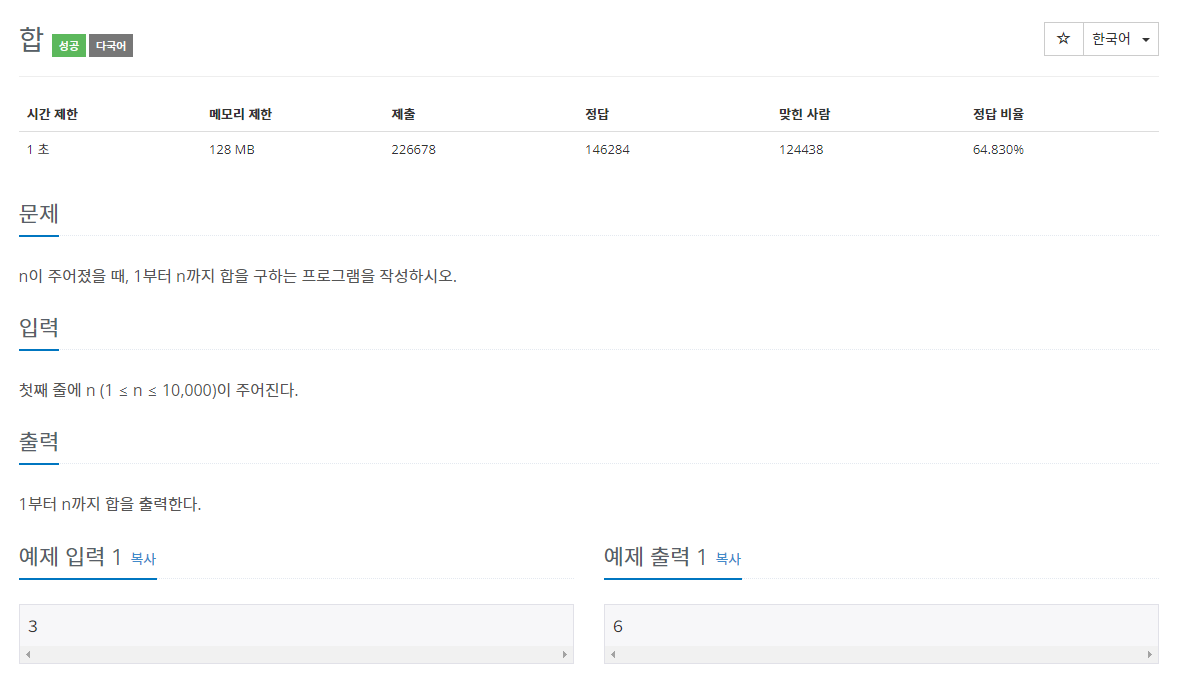 - 수를 입력받아 1부터 입력한 수 까지 1씩 result에 더해줍니다.