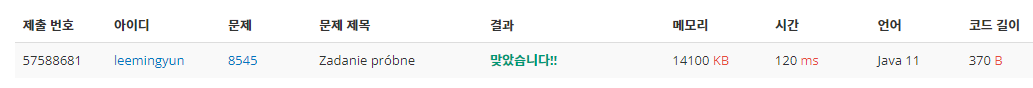 | [백준] 8871: Zadanie probne 2 - JAVA [자바] (0) | 2023.04.18 |