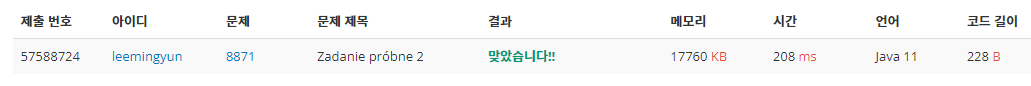 | [백준] 8545: Zadanie probne - JAVA [자바] (0) | 2023.04.18 |