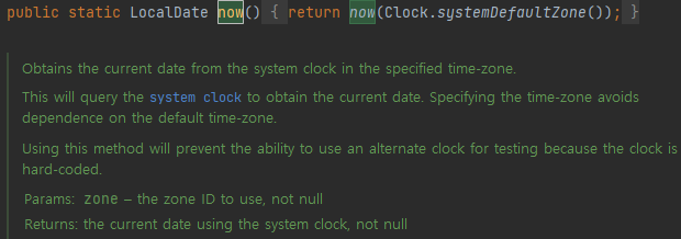 - LocalDate 클래스의 now 함수를 이용하여 현재 날짜를 가져옵니다.