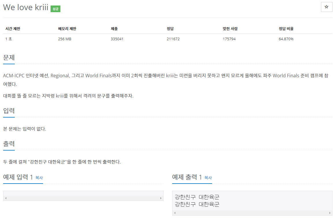 System.out.println("강한친구 대한육군");
