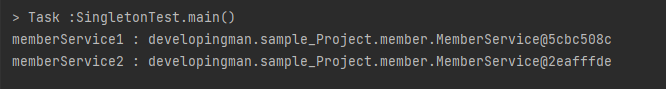 같은 memberService를 사용하지만 뒤에 붙은 주소값이 다른 것을 확인할 수 있습니다.