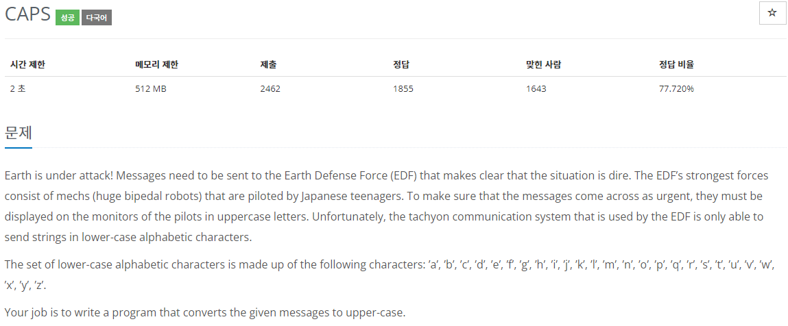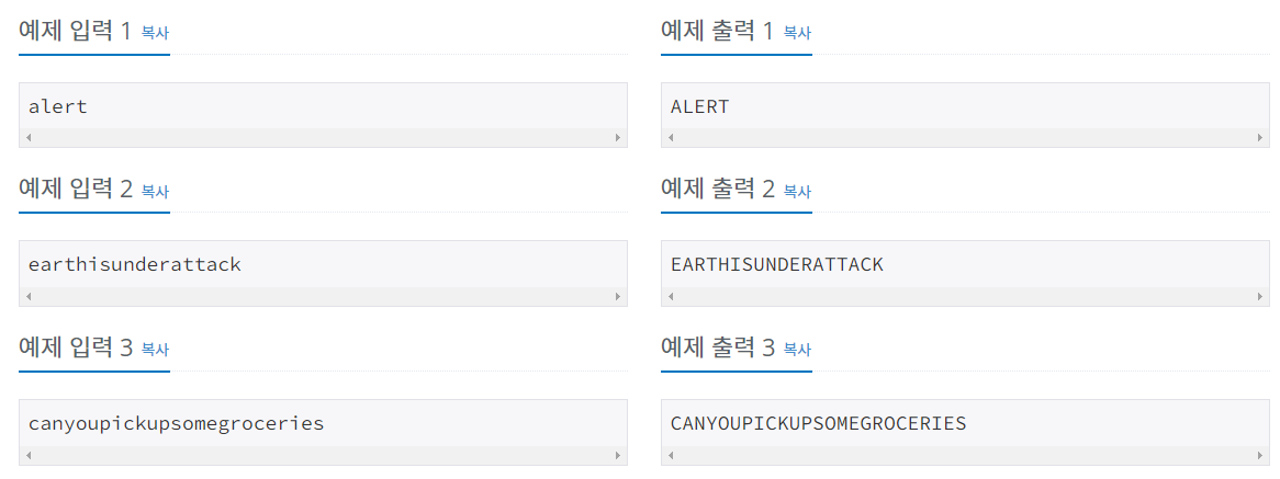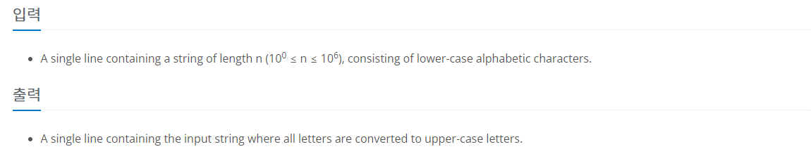 - 소문자로 입력 받은 문자를 대문자로 변경하여 출력하는 문제입니다.