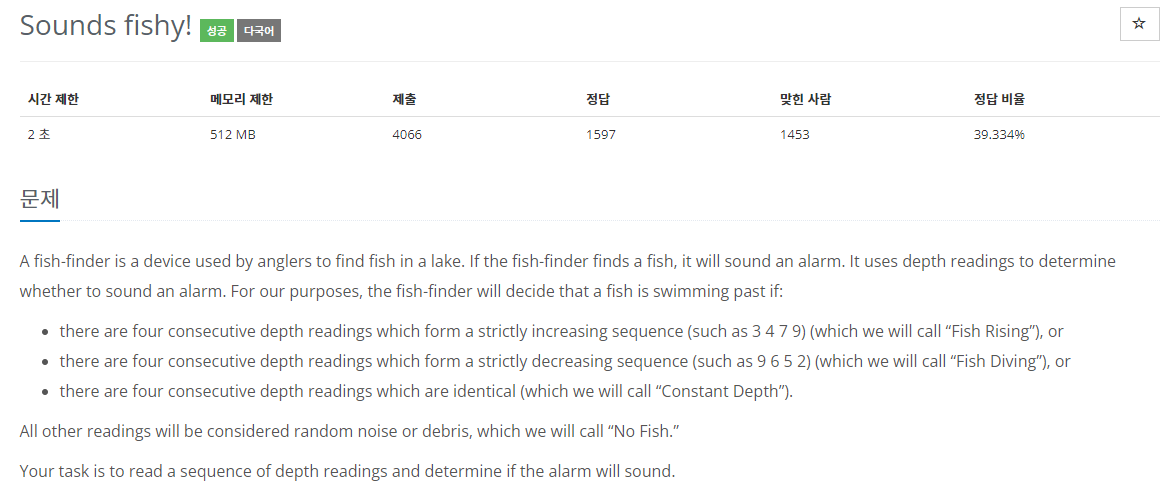 - 수가 계속해서 증가한다면 Fish Rising을 출력합니다