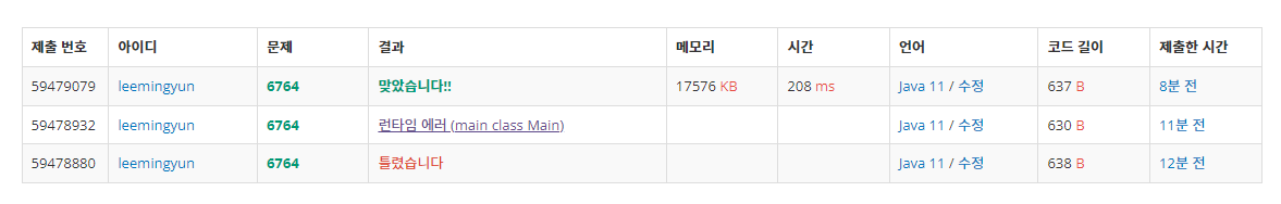 마지막으로 문제를 무시하고 출력만을 지켜 코드를 수정하여 정답을 도출하였습니다.